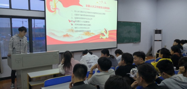 为深入学习贯彻落实两会精神,2019年3月27日晚18:30,成人文学 17级全体同学在禹州实习实训基地开展了两会精神学习活动。