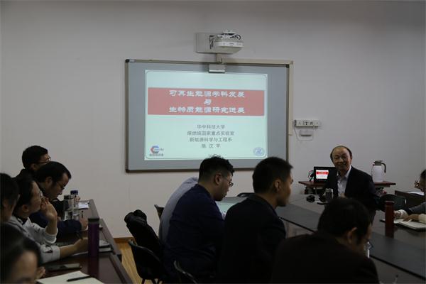 报告会上,许培援院长首先对陈汉平教授的到来表示热烈欢迎,并介绍了陈汉平教授的研究方向和学术成就,鼓励青年教师多向陈汉平教授交流学习。学术报告过程中,陈汉平教授首先针对当前十三五期间可再生能源的发展现状、规划及领域内亟待解决的重大问题进行了介绍,鼓励青年教师科研选题时要“聚焦国家需求、引领行业发展、实现互利共赢”。陈教授结合华中科技大学煤燃烧国家重点实验室生物质与流化床团队开展的科研工作和取得的科研成果,生动形象地讲述了基金申请中如何挖掘创新性和凝练科学问题,鼓励青年老师在基金申请时要注重多学科交叉问题以及新技术在新领域的原创性利用。陈教授通过展示当前华中科技大学在热解多联产方向开展的研究和取得的成果,为大家介绍了多联产技术在生物质高值化和综合化利用领域的发展现状和未来前景。