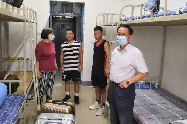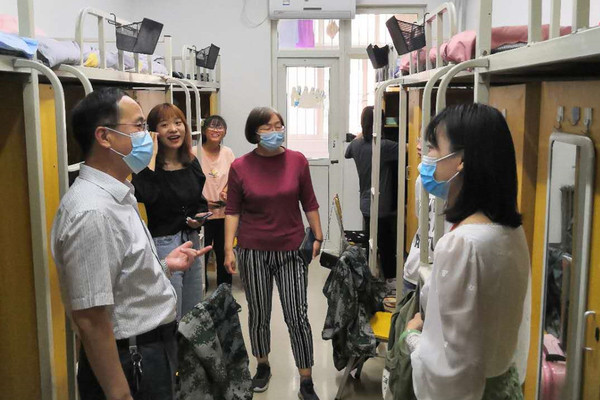 2020年9月20日下午4点,成人文学 党委书记邵建敏、院长许培援、分团委书记刘捷与新生辅导员老师一起走进新生宿舍,亲切慰问2020级新生。