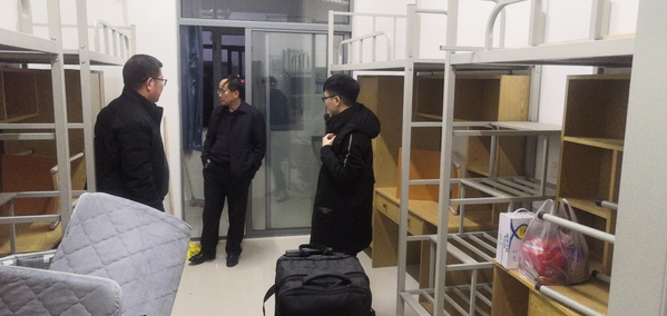 1月18日18点,成人文学 院长许培援带领学院副书记、辅导员走访慰问了因疫情影响不能回家的学生。