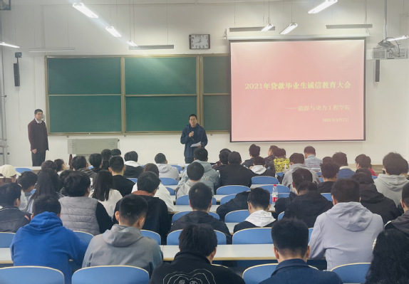 为帮助贷款毕业生了解还款流程和注意事项,增强诚信还款意识和社会责任感,4月7日中午,成人文学 在工程楼109召开了2021届贷款毕业生诚信教育大会。学院党委副书记李俊丰、学工办主任宋正凯和全体2021届贷款毕业生参加了此次会议。