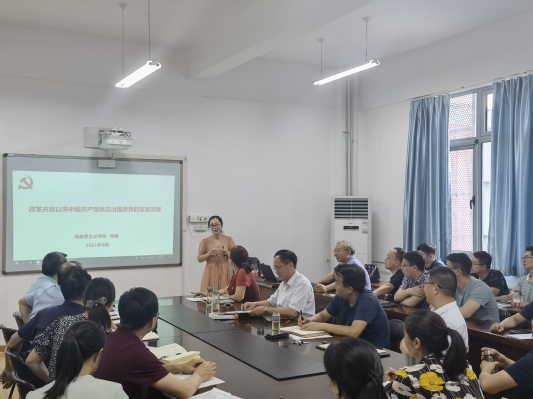 邀请校党委讲师团成员马铮作党史学习教育专题宣讲。学院全体教工参加了宣讲会,宣讲会由学院党委书记邵建敏主持。