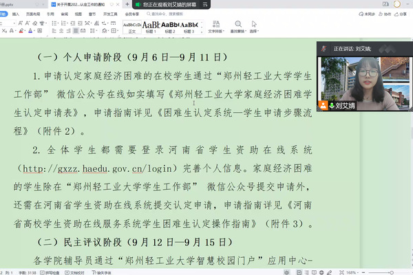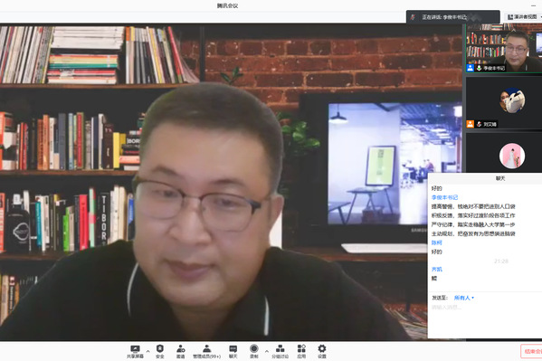 通过腾讯会议召开2021级新生线上见面会。成人文学