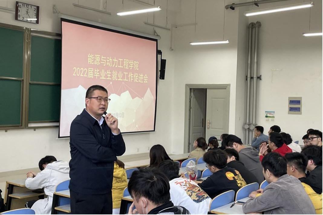 在工程楼109室召开2022届毕业生就业工作促进会,会议由就业负责老师刘艾婧主持,学院党委副书记李俊丰、全体辅导员、全体2022届毕业生参与本次会议。
