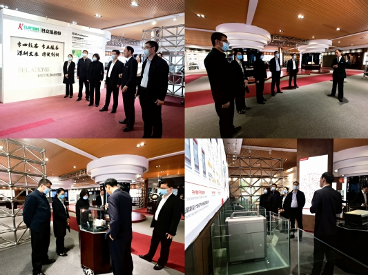 河南省日立信股份有限公司副总经理、技术研究院院长赫树开带领参观了公司展厅,介绍了公司发展历程和核心业务、产品。