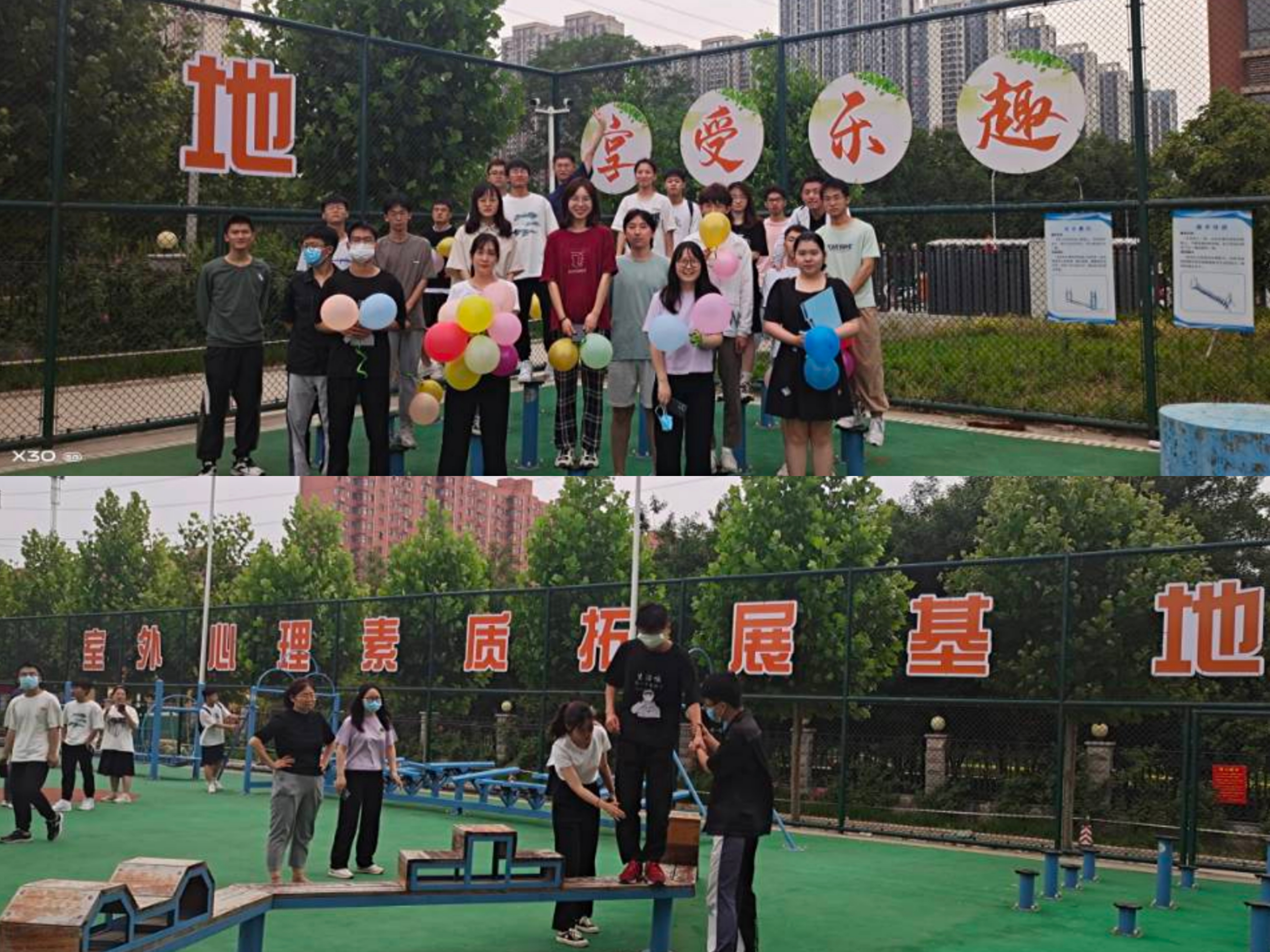 为进一步提升学生个人心理素质,增强学生的自信心,5月27日下午,成人文学 在科学校区室外心理素质拓展基地开展了“放飞心灵,享受生活”心理素质拓展训练活动。学院党委书记邵建敏老师、辅导员刘捷老师、刘艾婧老师、刘渊博老师、心理中心成员及部分学生参加了本次活动。