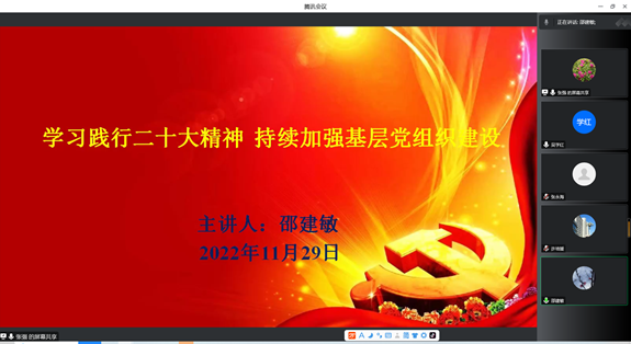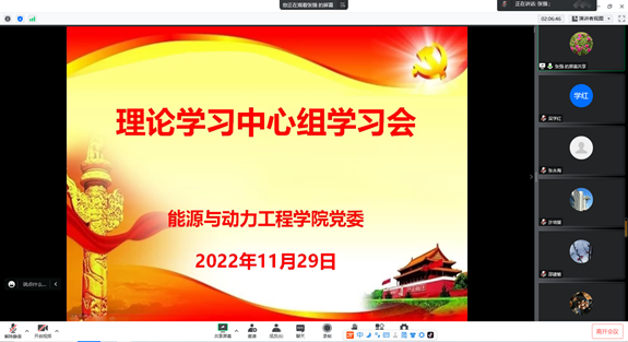 2022年11月29日下午,成人文学 通过腾讯会议线上方式,召开党委理论学习中心组学习会,集中学习党的二十大会议精神。学习会由学院党委书记邵建敏主持,全体党委委员参加。