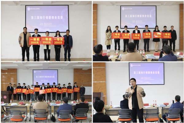 第三届知行创新创业竞赛经前期筛选,推选出22项入围决赛进行评审。决赛邀请亿联鑫工程科技有限公司董事长车福亮、奥克斯河南区域总经理孙永刚、校团委副书记王银峰、校就业指导中心王光霁,成人文学 副院长金听祥、张永海担任评委。