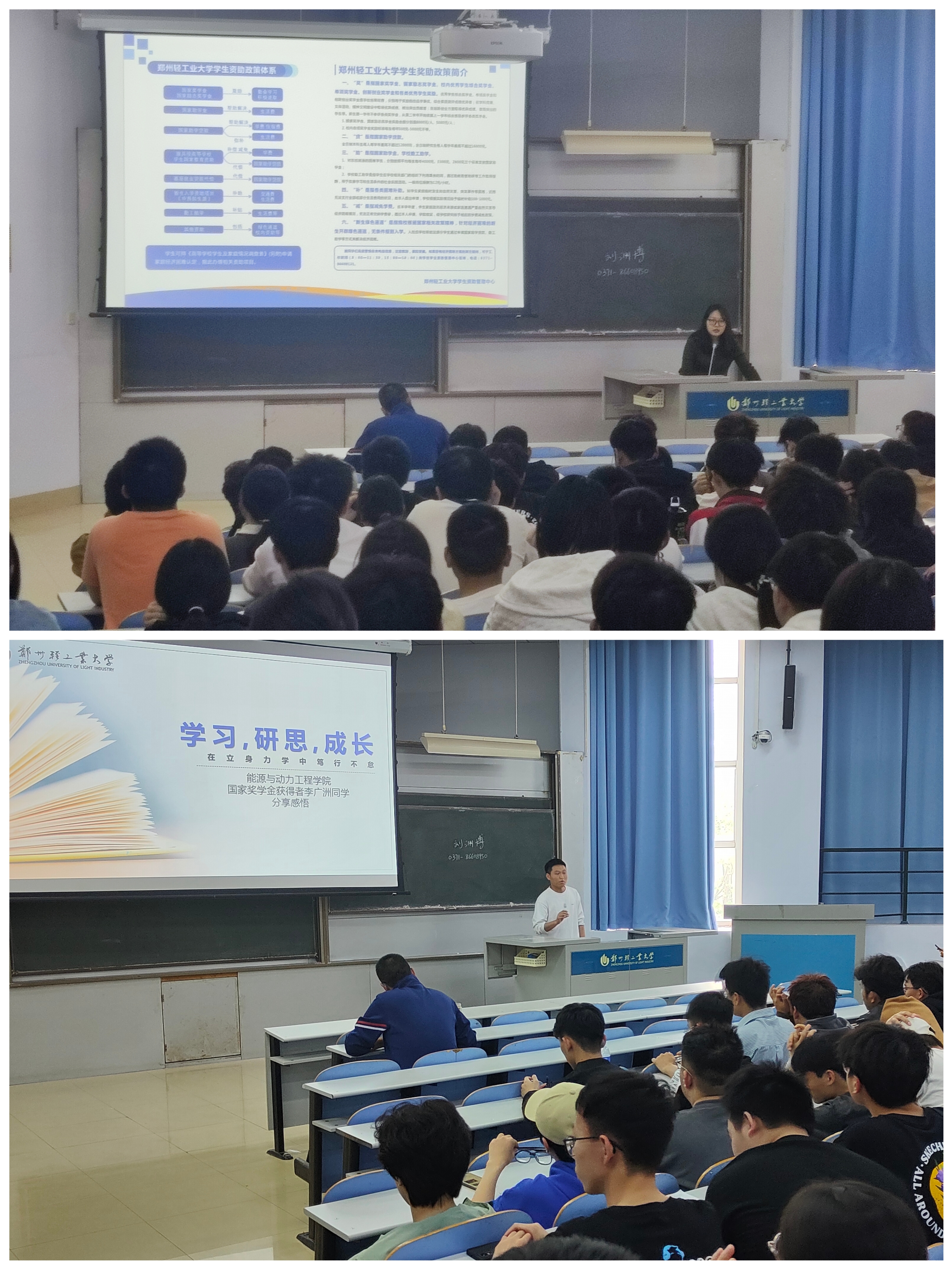 会上,刘渊博结合学校资助政策宣传手册向2022级学生们介绍了大学阶段的资助政策、资助对象、资助标准、申请条件等内容,重点对家庭经济困难学生认定工作的依据、程序以及国家助学金评议的过程及档次等情况进行了详细讲解。同时引导受助学生要自立自强,充分用好每一笔国家资助,树立感恩诚信意识与责任意识,勇于肩负起时代赋予青年的使命。国家奖学金获得者李广洲同学从专业知识学习、创新项目、社会实践等方面讲述了自己大学四年的主要收获,倡导同学们结合本专业的发展特点与趋势,在课余时间积极参加创新创业项目,勤于思考、努力进取,认真对待每一门课程,激励大家不断朝着自己的梦想前行。