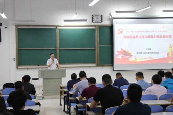 任润鑫以《开辟马克思主义中国化时代化新境界》为题,立足于——两个“行”、马克思主义中国化时代化的新成果、两个结合、习近平新时代中国特色社会主义思想的世界观方法论和习近平新时代中国特色社会主义思想凝心聚魂等,对习近平新时代中国特色社会主义思想进行深刻细致的解读。报告指出,马克思主义的价值观主张与中国具体实际和中华民族优秀传统文化理念高度契合,是我们立党立国,兴党兴国的根本指导思想。指出了党和国家取得巨大成就的三大因素,以习近平同志为核心的党中央的坚强领导、习近平新时代中国特色社会主义思想的重要指导、党和人民的团结奋斗。