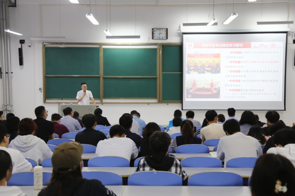 邀请学校党委讲师团成员任润鑫博士作学习贯彻习近平新时代中国特色社会主义思想主题教育专题宣讲。学院全体教师、学生党员及青马学员参加会议,学院党委书记邵建敏主持宣讲会。