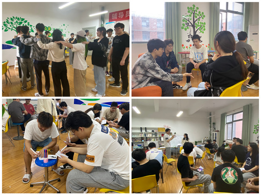团体心理辅导活动分为两个阶段,第一阶段以心理互动的形式开展,包括“圆圈按摩”、“优点糖葫芦串”及“人生绘本”。“圆圈按摩”通过同学们围成一个大圈进行两分钟的互相按摩,缓解了自身疲劳的同时,又缩短了人与人之间的心理距离,活跃了现场氛围。“优点糖葫芦串”要求参与者集中注意力,认真记忆组内同学的优点信息并依次复述,使同学们进一步了解他人的优点,提高团队协作的能力。在“人生绘本”过程中,同学们用画笔在绘本上画出自己的过去、现在和未来,并在组内分享交流,鼓励同学们勇于表达、善于表达,加强彼此之间的信任度。第二阶段通过让同学们匿名在纸上写下参与本次团体心理辅导的感受及各宿舍目前急需解决的问题,方便后续学院心理专职老师、辅导员了解学院同学情况,帮助大家疏导心理问题。最后刘渊博进行了活动总结,希望同学们在今后遇到困难时能够积极面对,热爱生活,与他人和谐相处,至此本次心理团辅活动圆满结束。