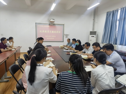 学院院长许培援传达领学了《关于开展2023年纪律教育月活动的通知》内容,他在谈话中指出:党员领导干部要以身作则,严格履行“一岗双责”,以开展纪律教育月活动为契机,继续在守规矩知底线方面带好头做榜样,加强师生遵章守纪教育,教育引导党员形成尊崇党章、遵守党纪的良好习惯,不断增强法治意识、纪律意识,促进依法履职、廉洁从政。