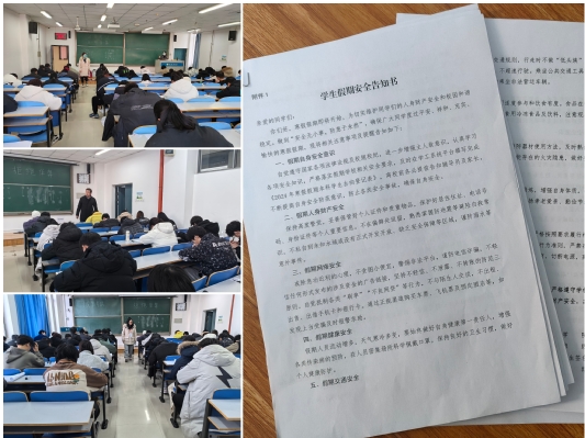 会上,辅导员向各年级同学们传达了学校关于2024年寒假学生安全教育及管理工作的通知要求,组织大家签订了《假期学生安全告知书》。辅导员就人身财产、交通出行、食品卫生及冬季取暖等方面寒假期间易发的安全问题进行了提醒,倡导同学们做好安全防范工作,特别强调离校时要及时关好门窗,切断水电;上网时遵守网络文明公约,不泄露个人信息,注意防范电信诈骗、网络诈骗;外出时自觉遵守交通规则,切勿乘坐非法营运车辆,妥善保管好个人证件和贵重物品,始终做好自身安全第一责任人。