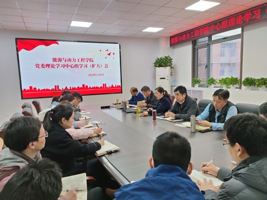 3月6日上午,能源与动力工程学院在工程楼407室召开党委理论学习中心组学习(扩大)会,学院党委书记邹娟主持会议,学院党委委员、全体科级干部参加会议。