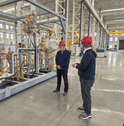 随后,吴学红一行实地参观了中科清能的制造工厂(一期)、液氢测试项目情况,就氢液化装备工艺设计、生产制造等情况与公司技术团队进行了现场交流。