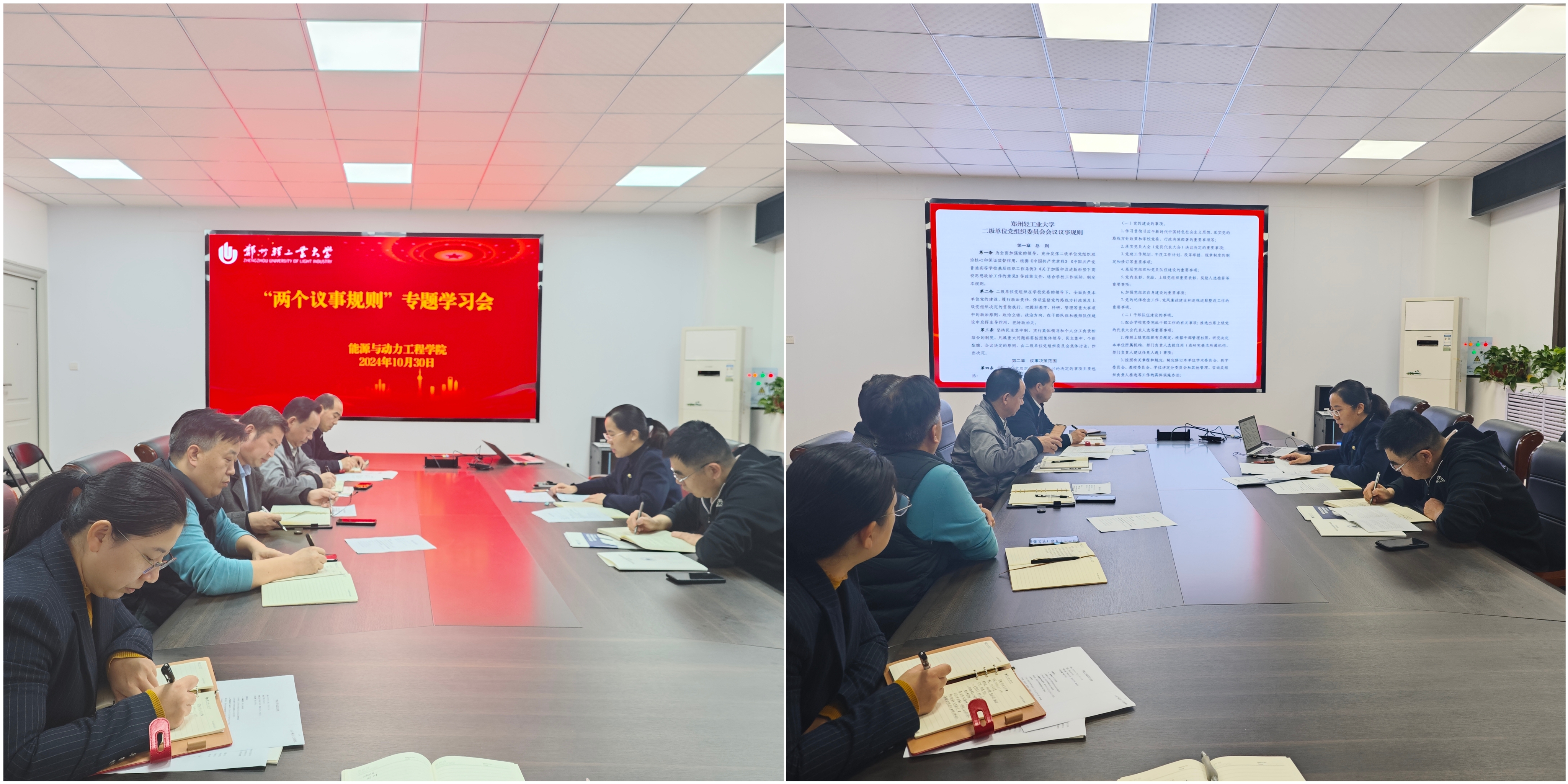 10月30日下午,能源与动力工程学院在工程楼407会议室召开专题学习会,专题学习《成人文学 二级单位党组织委员会会议议事规则》《成人文学 学院党政联席会议议事规则》。学院党委委员参加会议,会议由党委书记邹娟主持。