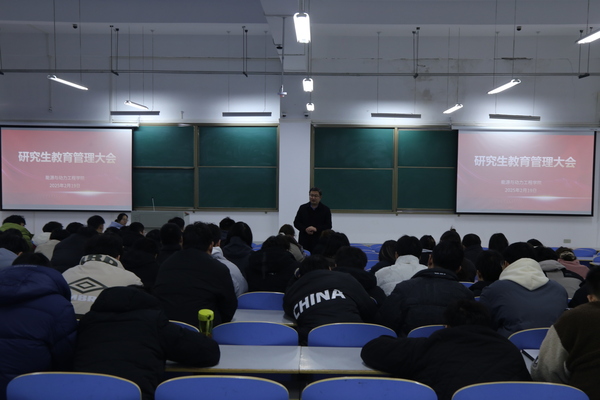 2025年2月19日,能源与动力学院在工程楼101召开研究生教育管理大会。学院党委副书记李俊丰、研究生辅导员王霄和全体研究生参加会议。