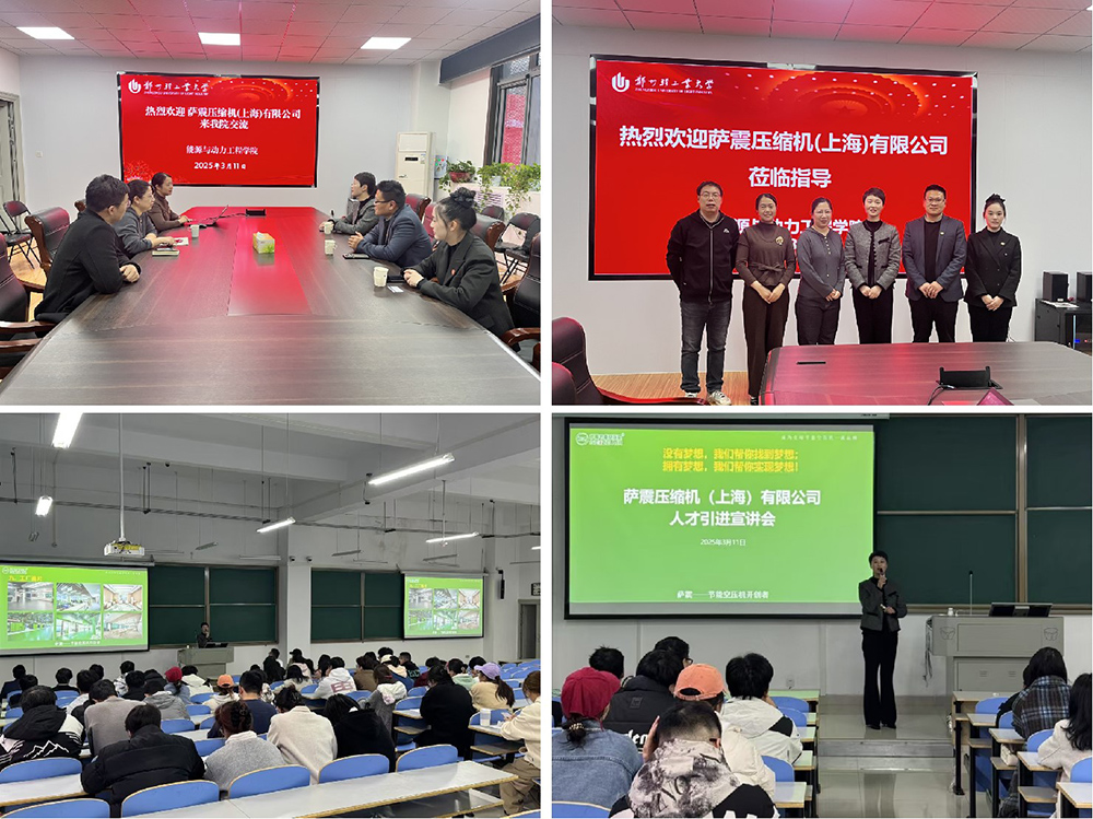作为国内节能空压机领域的领军企业,萨震压缩机以“双级压缩+永磁/高效变频”等核心专利技术引领行业革新,此次招聘交流为毕业生搭建就业平台,也为推动校企合作,助力产学研协同创新,为双方开展多方面合作奠定了基础。